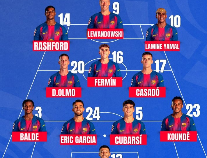 در خط حمله، فلیک بار دیگر به تجربه و گلزنی روبرت لواندوفسکی تکیه دارد. لامین یامال و مارکوس رشفورد نیز دو بال هجومی تیم خواهند بود تا ساختار هجومی بارسا را کامل کنند. ترکیب اصلی بارسلونا شامل خوان گارسیا، کُنده، کوبارسی، اریک گارسیا و بالده در خط دفاع است.