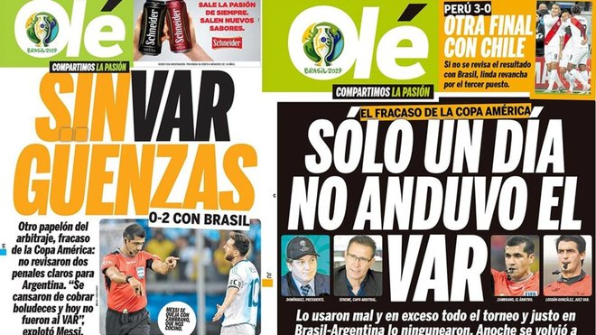 ساعاتی بعد از اتمام این بازی، مقامات اتحادیه فوتبال آرژانتین گلایه ای رسمی را به کونمبول ارسال کردند و بدین ترتیب اعتراضشان را نسبت به عملکرد رودی زامبرانو، داور اکوادوری بازی مطرح کردند و درعین حال خواهان دسترسی به مذاکرات و گفتگوهای میان داور و سالن وار شدند. کلودیو تاپیا، رئیس اتحادیه فوتبال آرژانتین دراین باره گفته:« من درخواست کردم تا مسئولان کونمبول تصاویر و فایل صوتی سالن وار در بازی آرژانتین- برزیل را در اختیارم قرار دهند. چرا که در آن بازی دو برخورد مشکوک رخ داد که می توانست دو پنالتی برای تیم ملی آرژآنتین به همراه داشته باشد ولی عجیب اینجاست که این صحنه ها بازبینی نشده و طبق آنچه در پروتکلها ذکر شده، به داور اطلاع رسانی نشده است.»