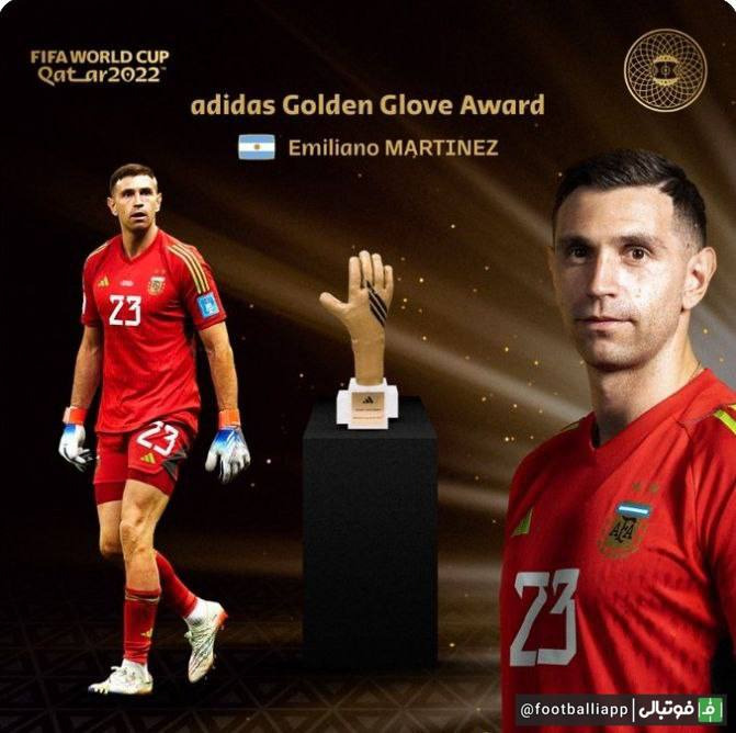 امیلیانو مارتینز به عنوان بهترین دروازهبان جام جهانی ۲۰۲۲ انتخاب و برنده جایزه دستکش طلایی شد