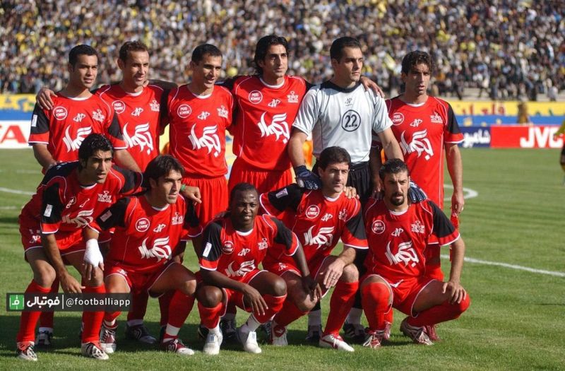 نوستالژی/ پرسپولیس مقام چهارم چهارمین دوره لیگ برتر در فصل ۸۴-۸۳/ ایستاده از راست: بهروزرهبریفرد. محمدمحمدی،محمدرضا مهدوی، رضاجباری، یحیی گل محمدی، ابراهیم اسدی/ نشسته از راست: علی انصاریان، کریم باقری، سامبوجوچی، عارف محمدوند و پژمان جمشیدی