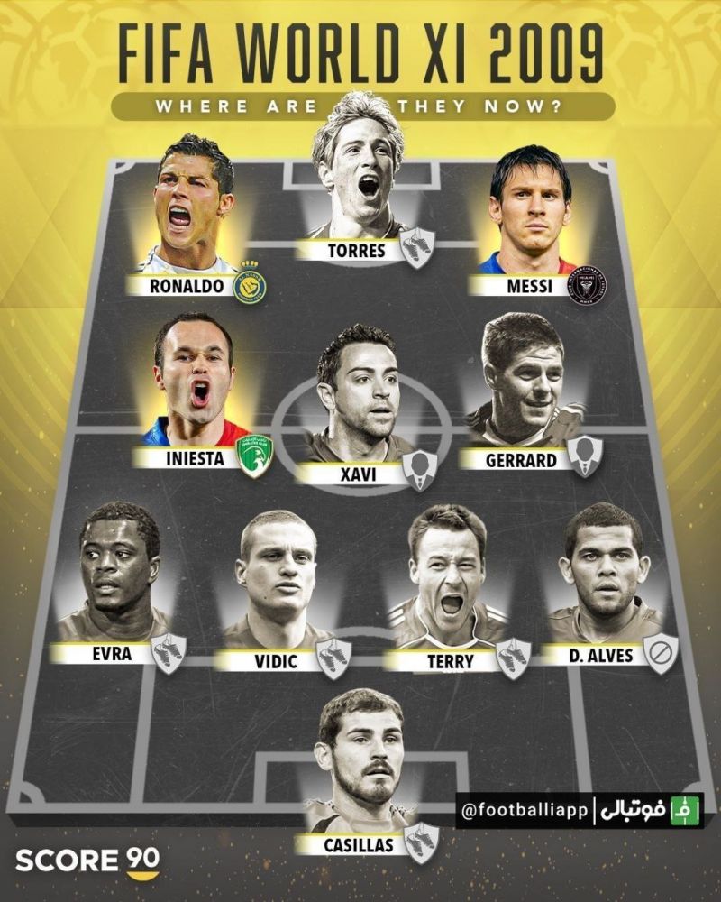 اینفوگرافی/ تنها سه بازیکن از تیم منتخب فیفا در سال ۲۰۰۹ هنوز بازنشسته نشده‌اند