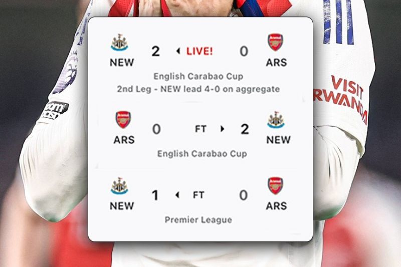 آرسنال در رقابت های لیگ برتر انگلیس با نتیجه یک بر صفر مقابل نیوکاسل یونایتد شکست خورد و در رقابت های جام اتحادیه انگلیس هم به طور رفت و برگشت در هر دو بازی با نتیجه دو بر صفر شکست را تحمل کرد.
