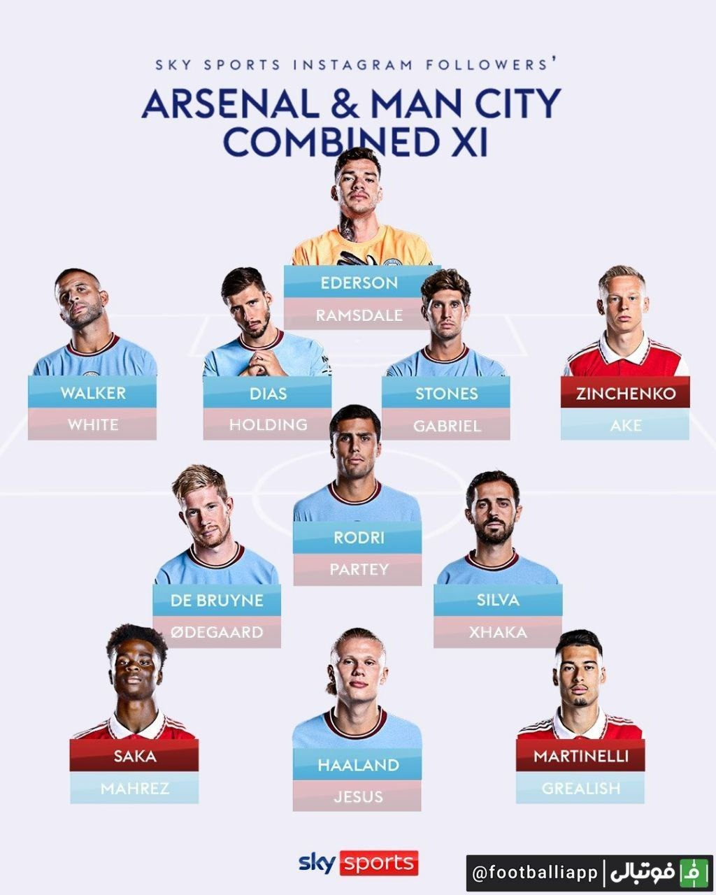 اینفوگرافی/ ترکیب منتخب منچسترسیتی و آرسنال از نگاه اسکای اسپورت به بهانه دیدار حساس فردا شب دو تیم