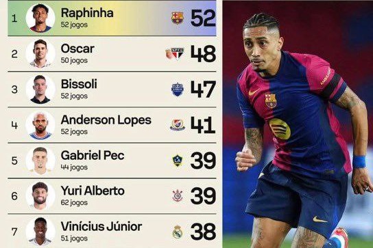 پایگاه خبری فوتبالی- بر اساس آمار منتشر شده توسط سوفااسکور، رافینیا، وینگر بارسلونا، با ۵۲ مشارکت گل (گل و پاس گل) در ۵۲ بازی اخیر خود، تأثیرگذارترین فوتبالیست برزیلی در ۱۲ ماه گذشته بوده است.پس از او، اسکار با ۴۸ مشارکت گل در ۵۰ بازی و بیسولی با ۴۷ ...