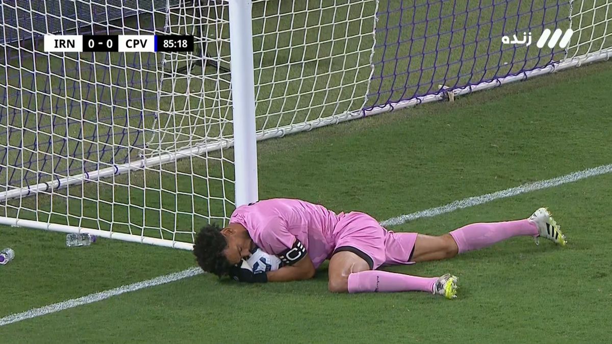 مدافع کیپ ورد شوت عزت اللهی را از روی خط دروازه ...