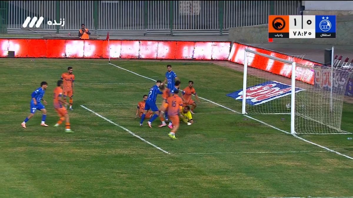 برخورد ضربه سر محمدرضا آزادی به تیر دروازه