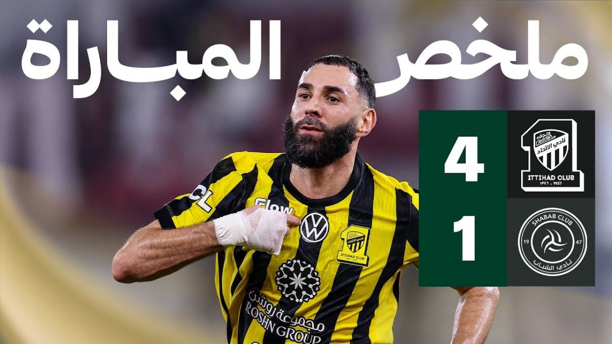 خلاصه بازی الاتحاد 4-1 الشباب ( هت تریک بنزما)