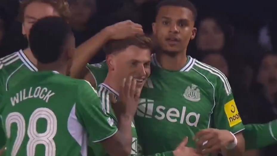 گل سوم نیوکاسل به قره باغ (دبل آنتونی گوردون)