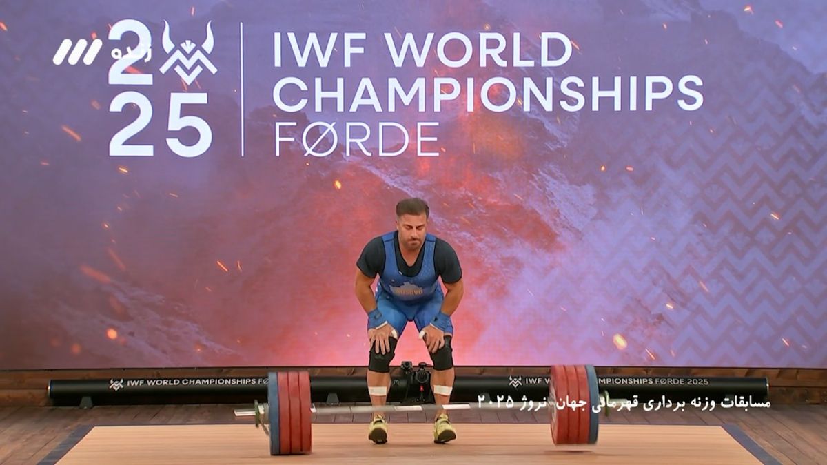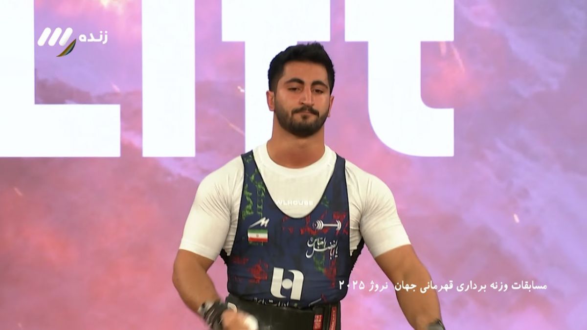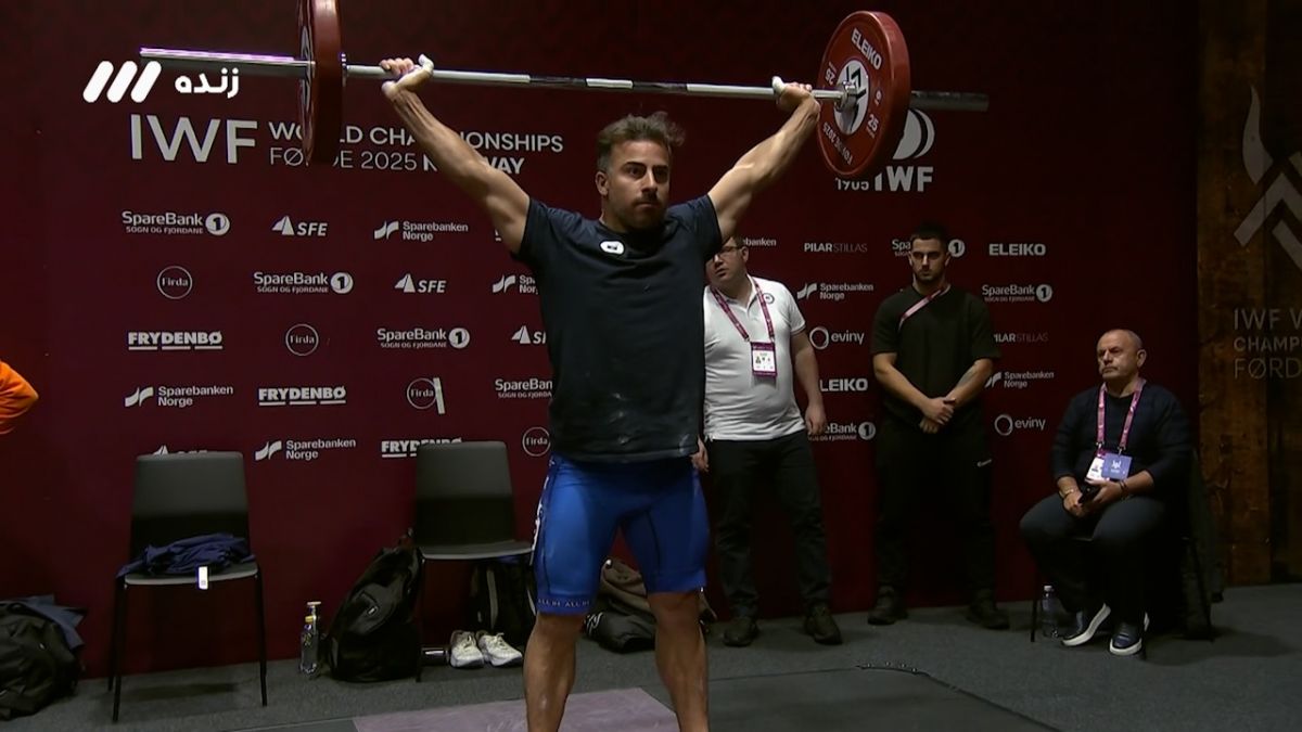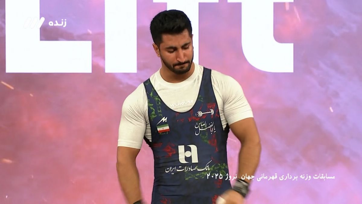 رقابت کیانوش رستمی در مسابقات وزنه برداری با پرچم ...