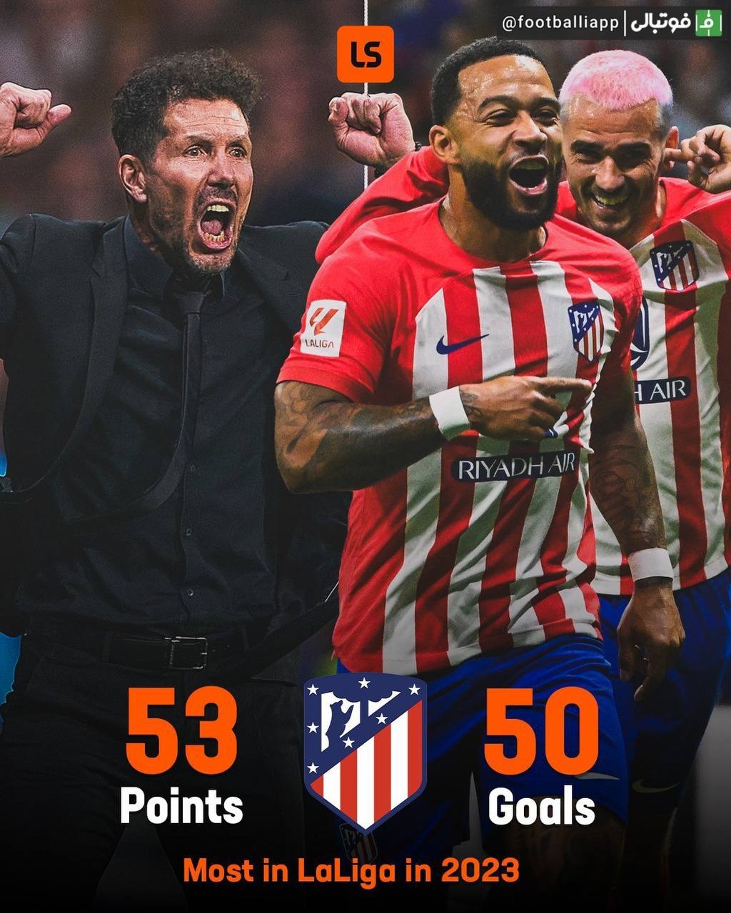 اتلتیکومادرید بیشتر از هر تیم دیگری در لالیگا و در سال ۲۰۲۳ امتیاز کسب کرده و گل زده است