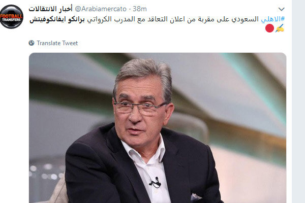 توییتر منتسب به نقل و انتقالات عربستان امروز در اینباره نوشت: «الاهلی عربستان در آستانه اعلام توافق با برانکو ایوانکوویچ کروات»