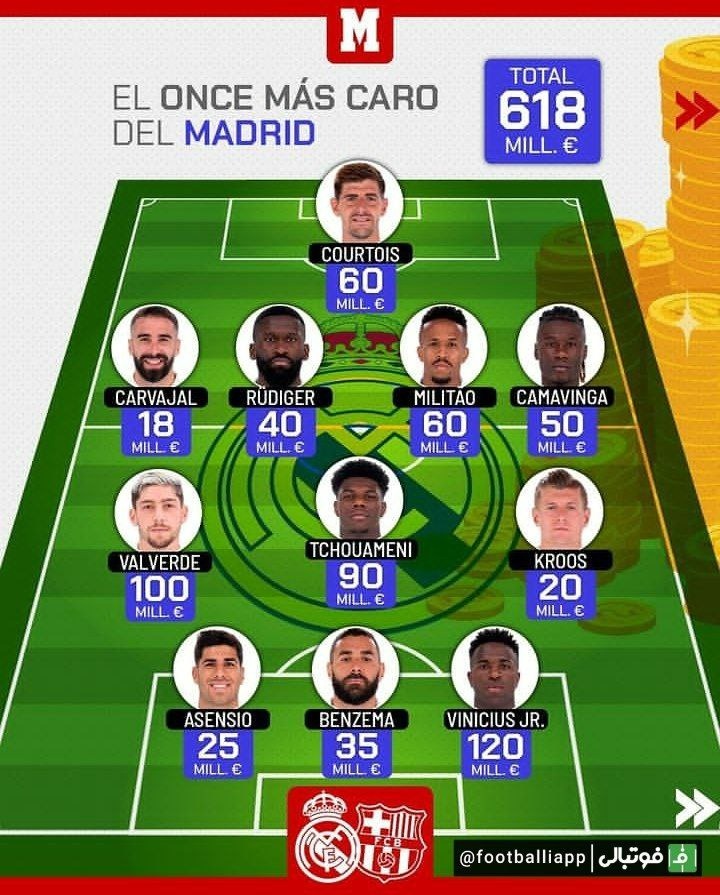 اینفوگرافی/ مقایسه ارزش 11 بازیکن ترکیب اصلی رئال مادرید و بارسلونا بر اساس قیمت‌گذاری ترانسفر مارکت