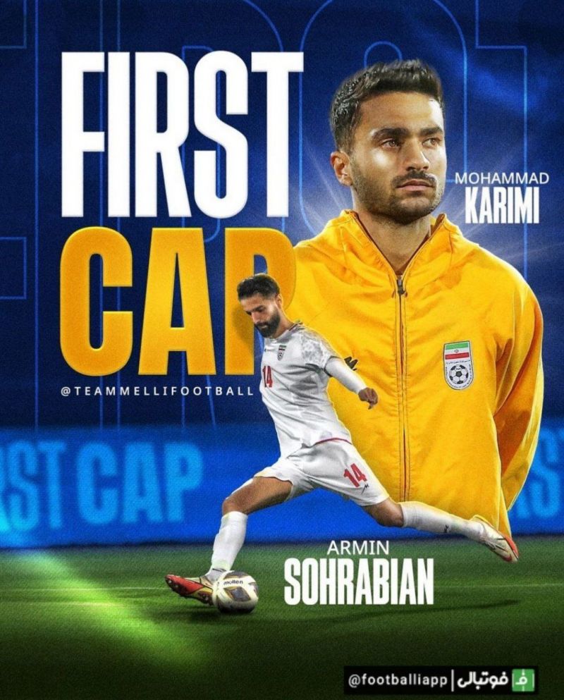پوستر/ پوستر صفحه رسمی تیم ملی ایران برای آرمین سهرابیان و محمد کریمی دو بازیکنی که در دیدار شب گذشته تیم‌ ملی ایران و کنیا برای اولین بار در ترکیب تیم ملی ایران قرار گرفتند