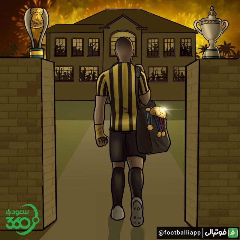 کاریکاتور صفحه سعودی 360 از گزارش مارکا مبنی بر اخراج بنزما به‌ دستور گایاردو (سرمربی الاتحاد)